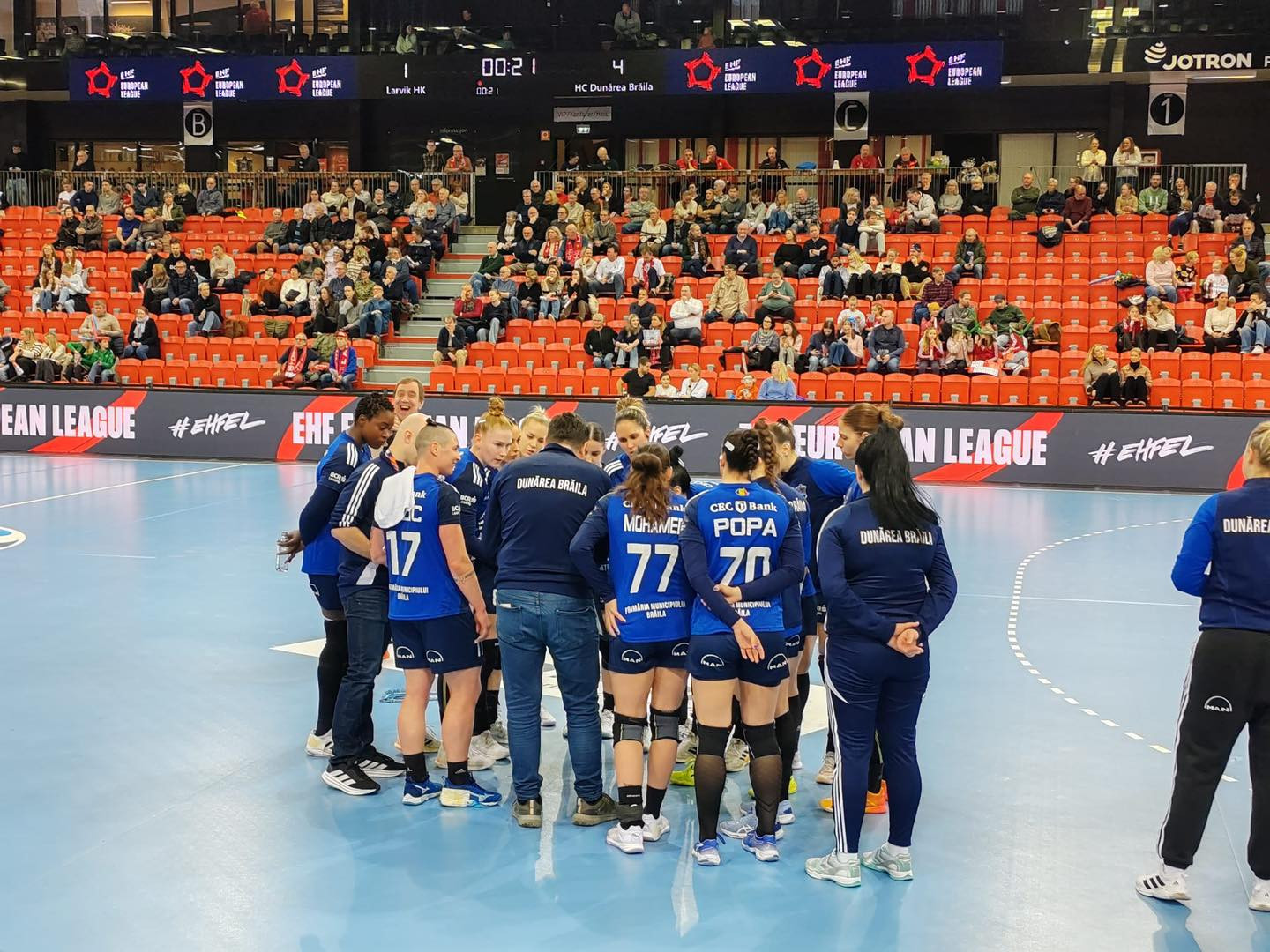 Echipa feminină Dunărea Brăila a învins, sâmbătă, în deplasare, formaţia Larvik HK, scor 27-24 (13-11), în al doilea meci din Grupa A a European League. Principalele marcatoare ale partidei au fost Hulleberg – 5 şi Ramberg – 5 pentru Larvik, respectiv Jezic – 7 şi Liscevic - 6 pentru Dunărea Brăila.