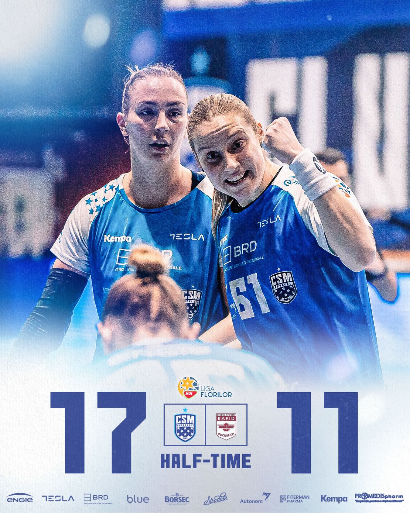 Final de primă repriză! CSM București conduce la pauză cu 17-11.