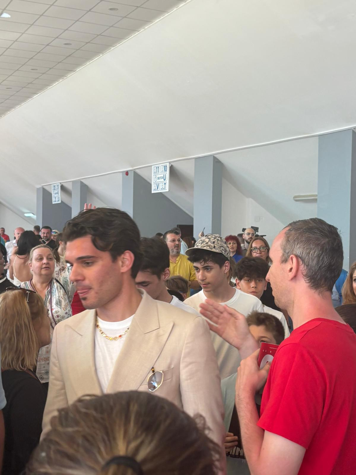 Ianis Hagi a asistat la meci. A stat în tribune lângă fosta scrimeră Ana Maria Brânză, iar după gală a fost asaltat de public. Fiul lui Gică Hagi a făcut zeci de poze.