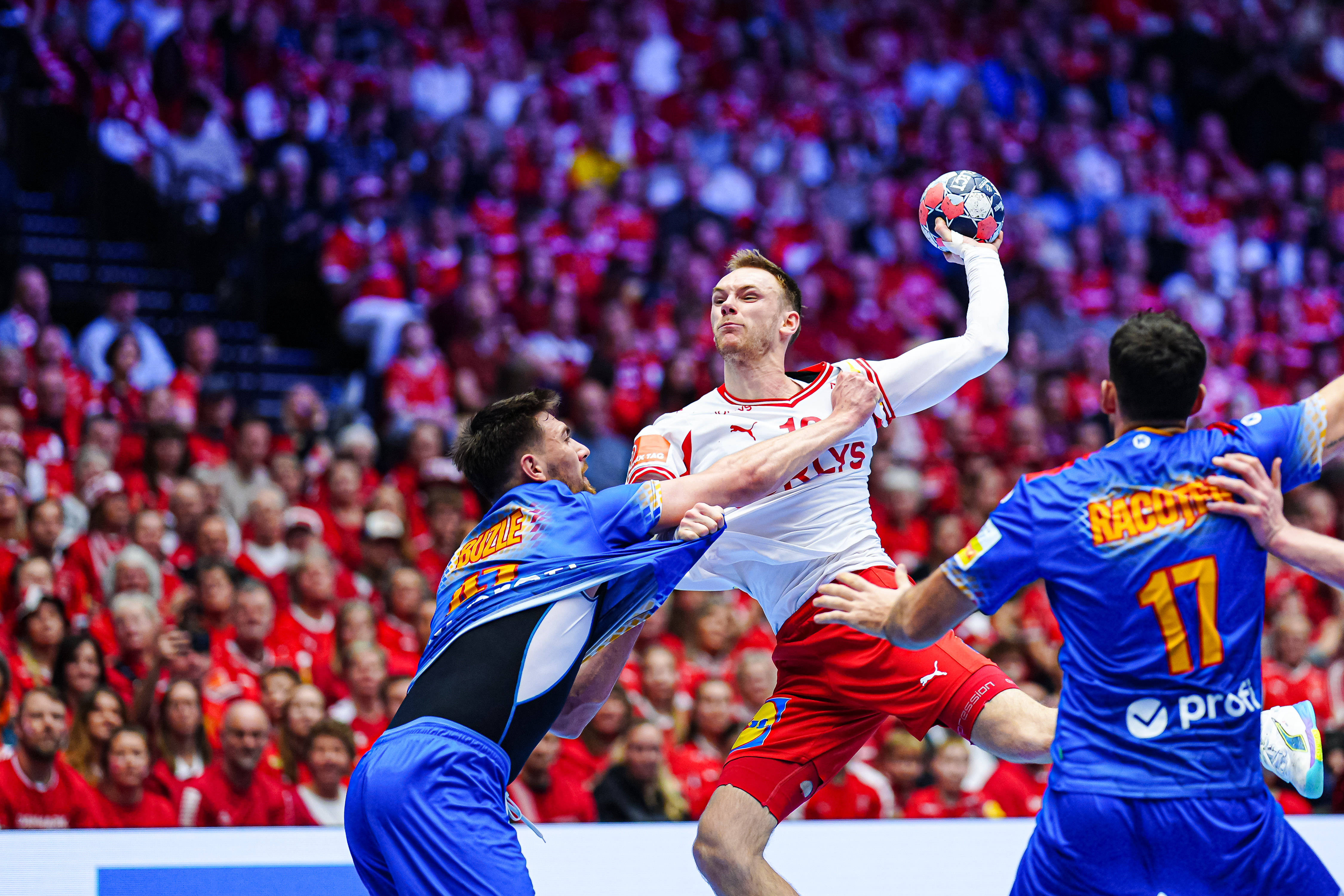 Min.23 România - Danemarca 11-16 Gidsel înscrie după o pătrundere în mare viteză.