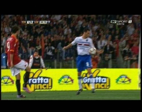 Aseara, pe Olimpico, Totti a deschis scorul in minutul 15, insa Sampdoria a revenit in repriza a doua prin Pazzini care a reusit o dubla de senzatie in minutele 52 si 85.