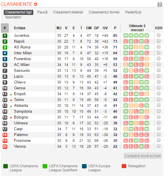 Juve a inceput foarte slab sezonul, iar dupa 10 etape disputate avea doar 12 puncte. Pentru torinezi a urmat insa o serie incredibila cu 24 de victorii si un egal in 25 de meciuri, astfel ca acestia au reusit sa revina si sa castige cel de-al 5-lea titlu la rand.