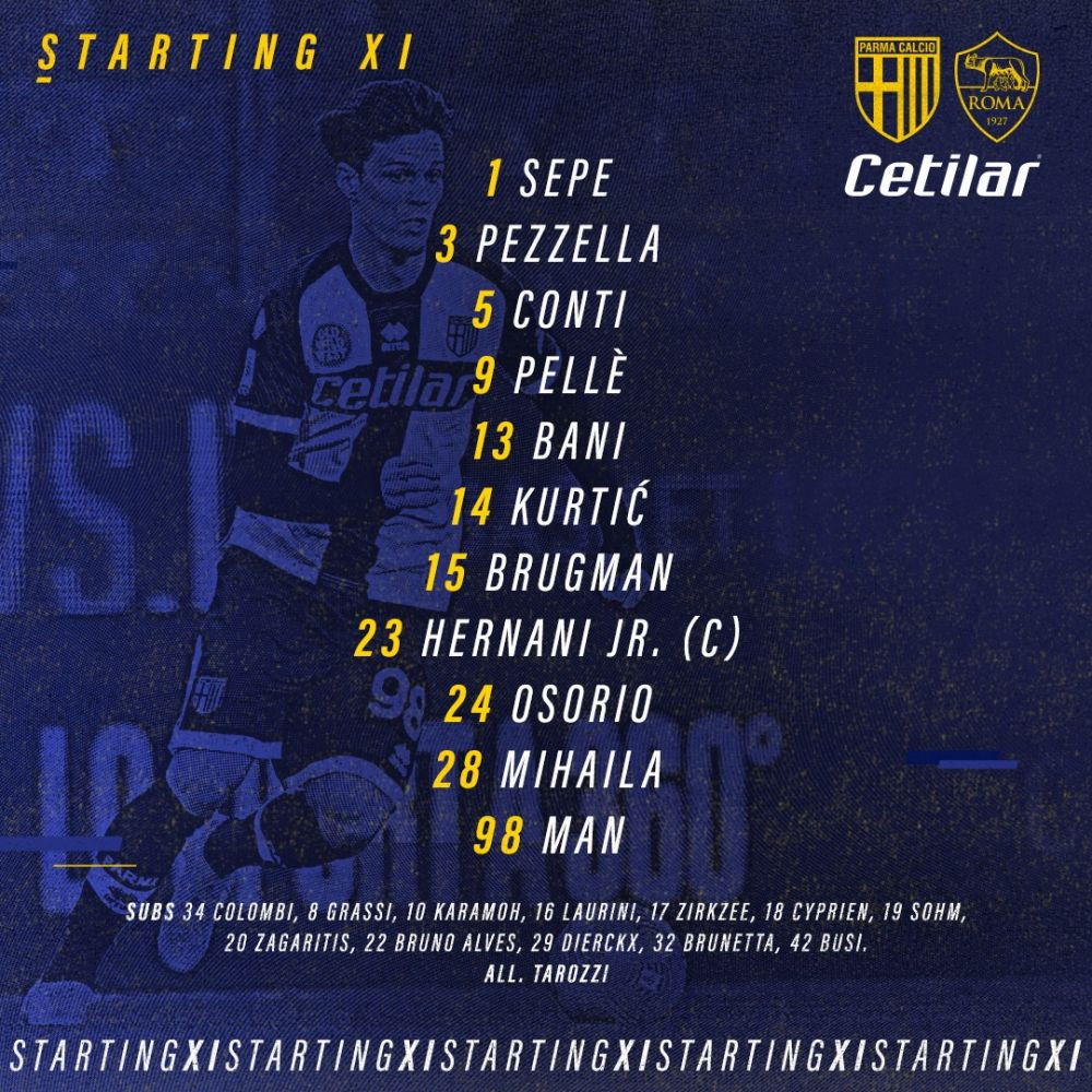 Parma: Sepe - Conti, Osorio, Bruno Alves, Pezzella - Sohm, Brugman, Kurtic - Man, Brunetta, Mihaila
