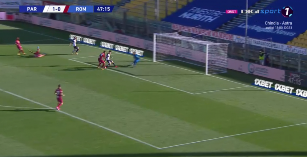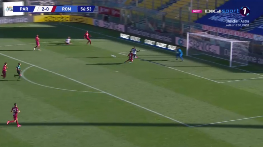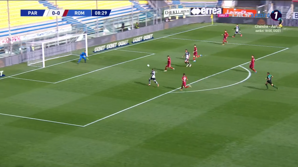 Min. 9: GOOOOOOOOL Parma! Dennis Man patrunde in banda dreapta, ii centreaza perfect lui Mihaila, iar fostul jucator al Craiovei impinge mingea in poarta!