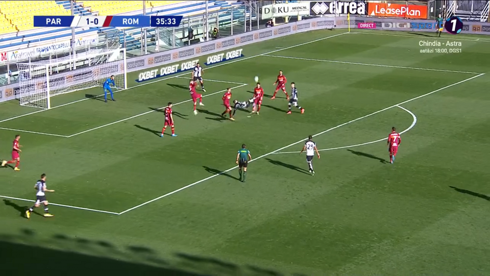 Min. 36: Parma e din nou periculoasa! Pelle trimite balonul in careu, Mihaila incearca o foarfeca, dar rateaza executia.