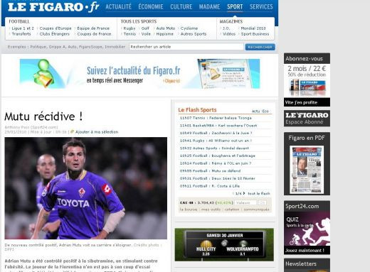 Un alt jurnal francez, Le Figaro, scrie ca Mutu a recidivat si ca depistarea pozitiva a romanului este "o lovitura dura pentru Fiorentina", care va trebui sa il suspende sau chiar sa il concedieze pe atacant.