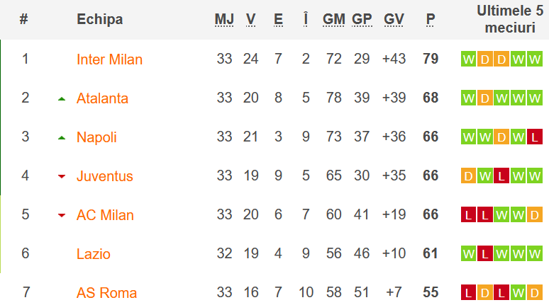 Lazio se afla pe locul 6, dar are un meci mai putin decat celelalte contracandidate.