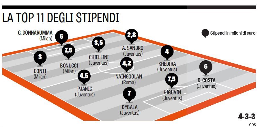 Gazzetta dello Sport a publicat astazi o analiza a contractelor din Serie A.