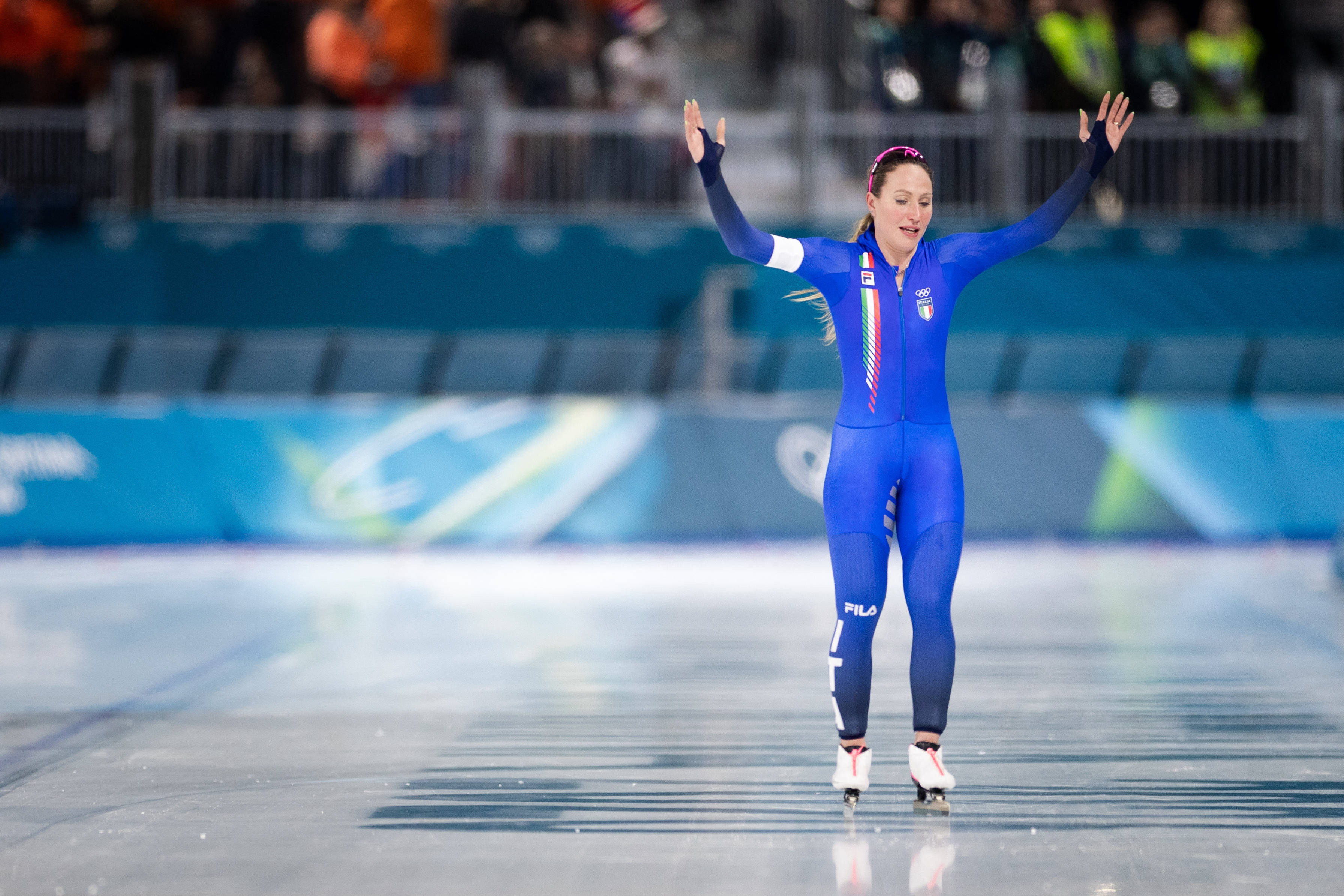 Favorita fanilor italieni, care a câştigat sâmbătă titlul la 3.000 m, a fost însoţită pe podium de olandeza Merel Conijn, care a câştigat argintul, şi de medaliata cu bronz Ragne Wiklund din Norvegia.