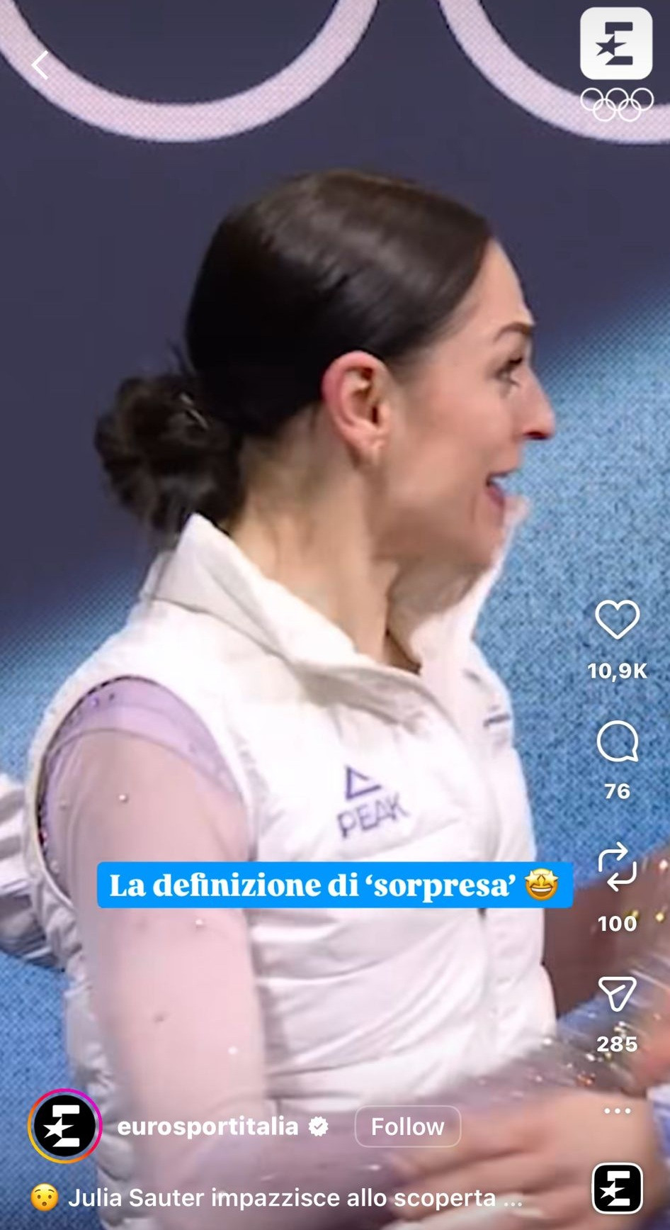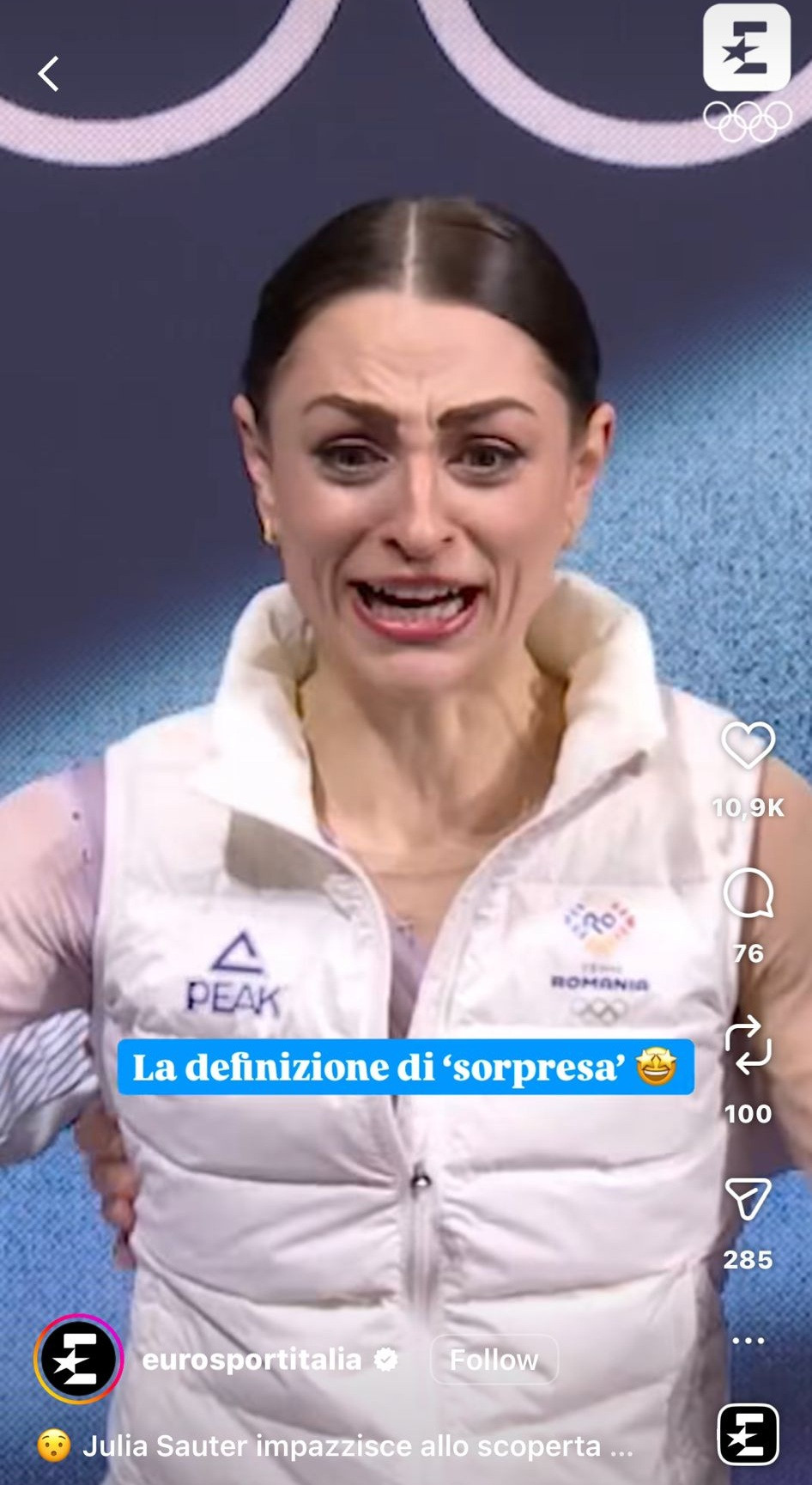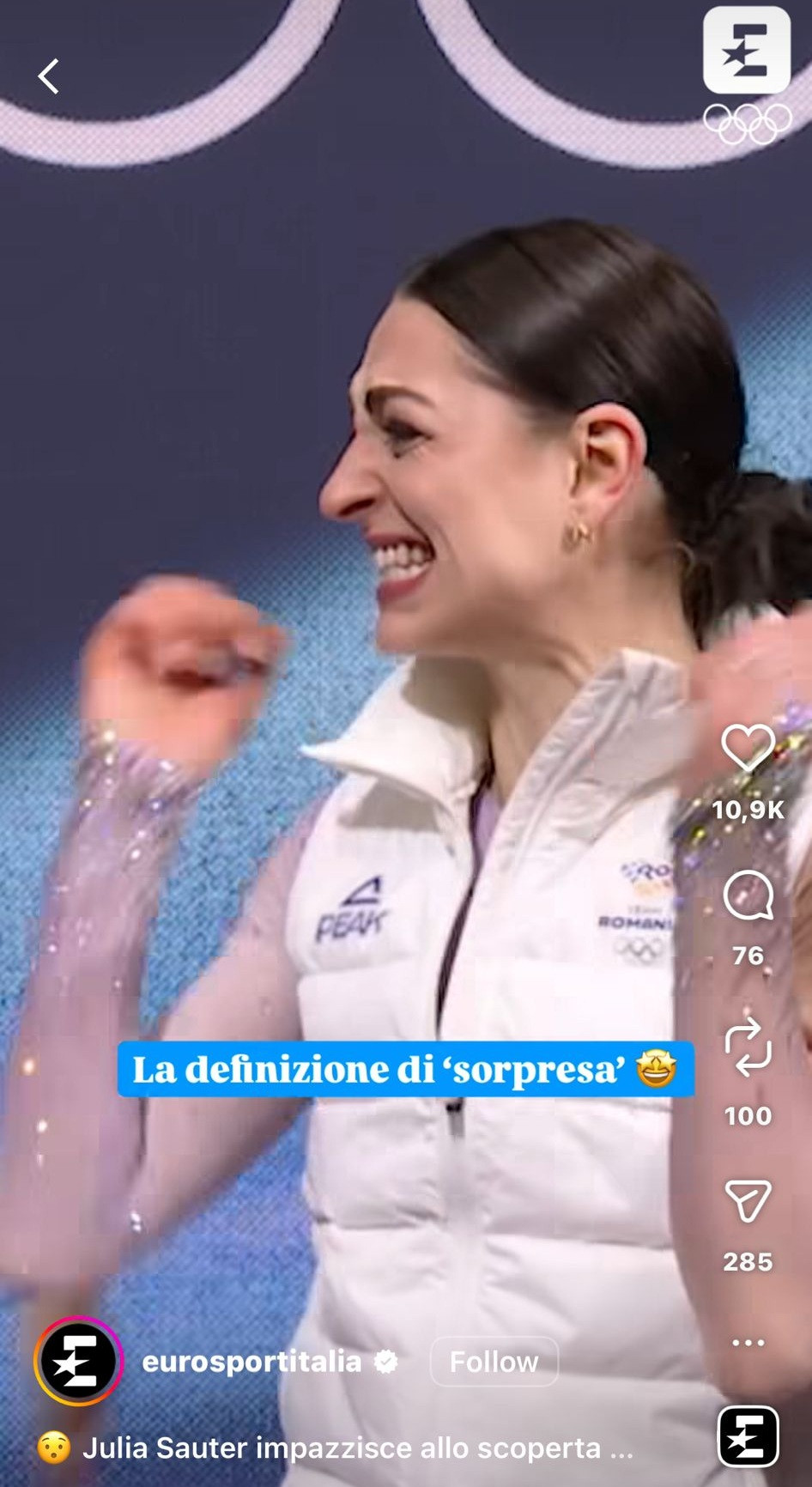”Definiția surprizei”, a scris Eurosport Italia despre reacția sportivei.