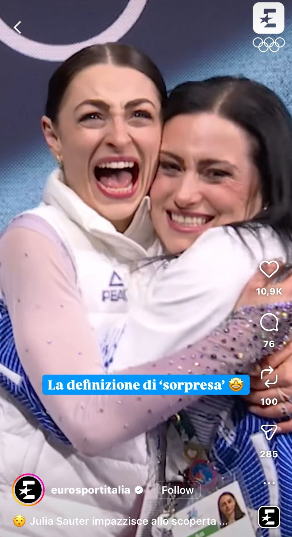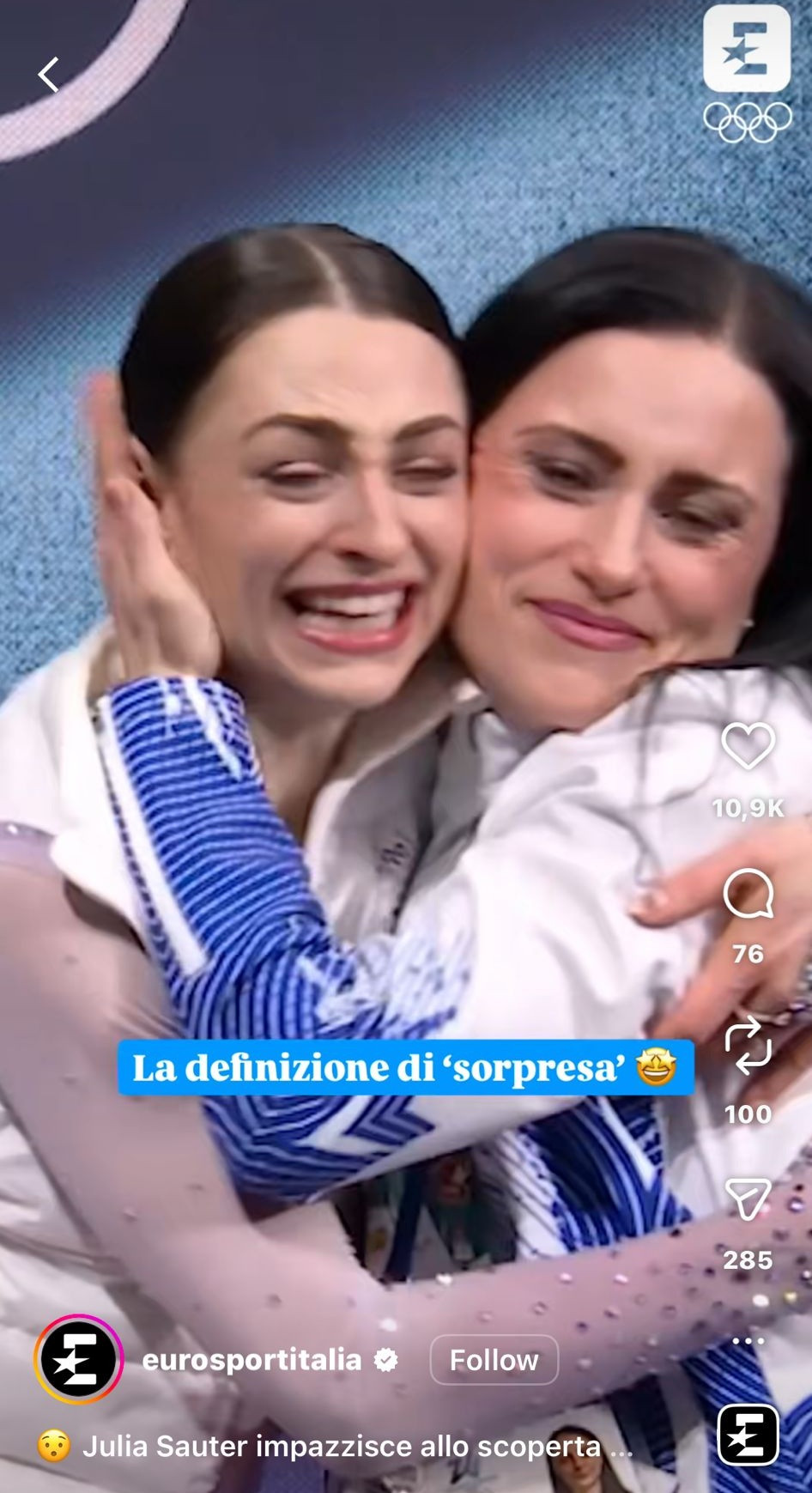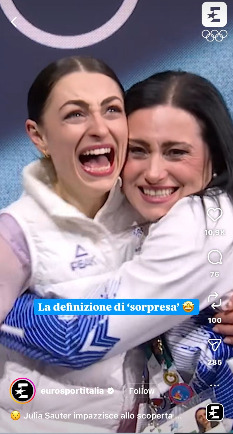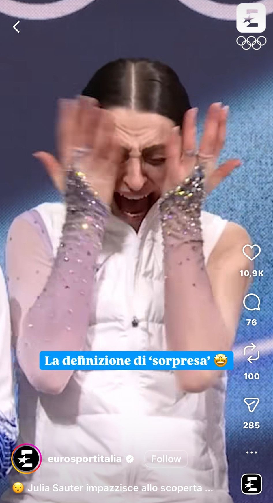 ”Definiția surprizei”, a scris Eurosport Italia despre reacția sportivei.
