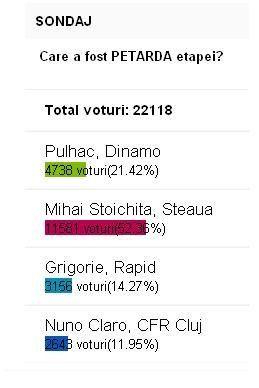 Infrangerea cu Alba Iulia i-a suparat maxim pe stelisti. Steaua a cazut pe locul 5 in clasament cu 4 etape inainte de final. Fanii de pe www.sport.ro l-au gasit vinovat pe Stoichita, care a fost numit petarda etapei.