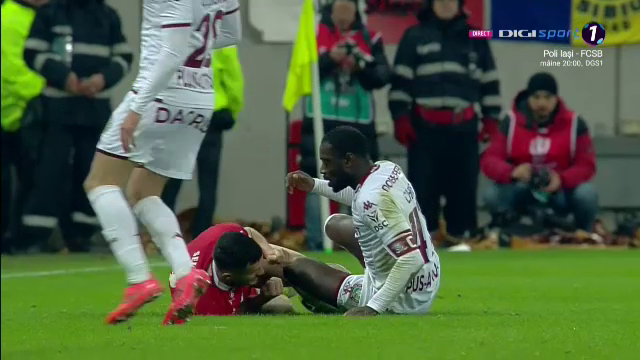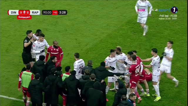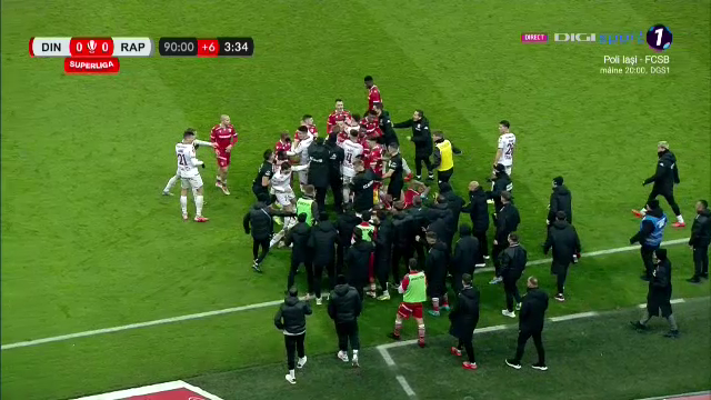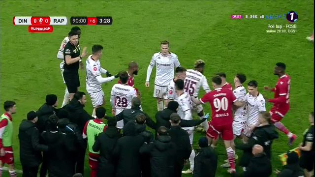 După un meci relativ tăcut, s-au încins spiritele chiar pe final. În minutul 90+3, Christopher Braun l-a îmbrâncit pe Astrit Selmani și, ulterior, l-a trântit la pământ în clipa în care fotbalistul lui Dinamo a încercat să se ridice.