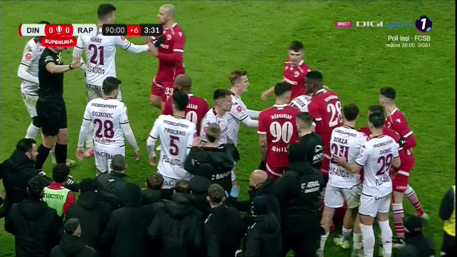 Băncile de rezervă au explodat, iar tensiunea a crescut la cote alarmante pe Arena Națională. Marian Barbu, ”centralul” partidei, nu a ezitat să scoată cartonașul roșu din buzunar.