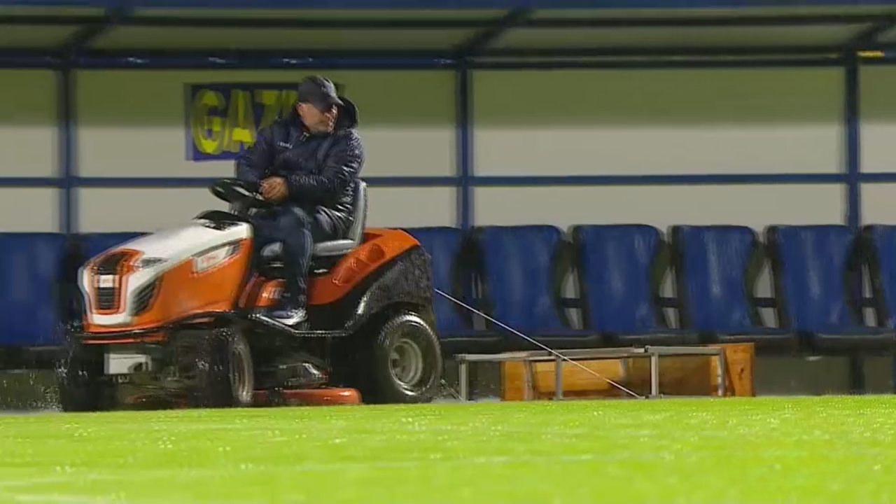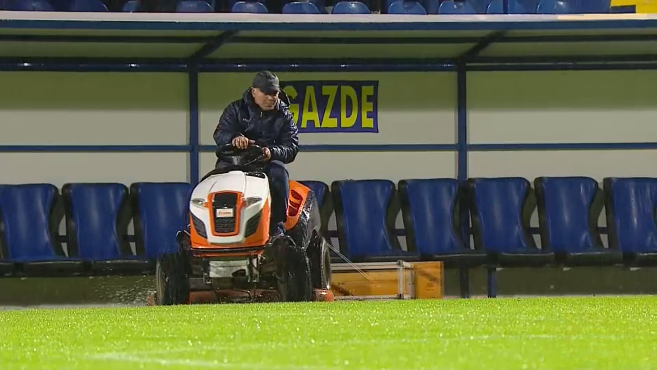 Organizatorii au încercat să scoată apa cu lopata de pe suprafața de joc, însă fără prea mare succes. Meciul a fost chiar în pericol să nu se mai joace, însă centralul Rareș Vidican a decis ca meciul să se dispute la ora la care a fost programat.