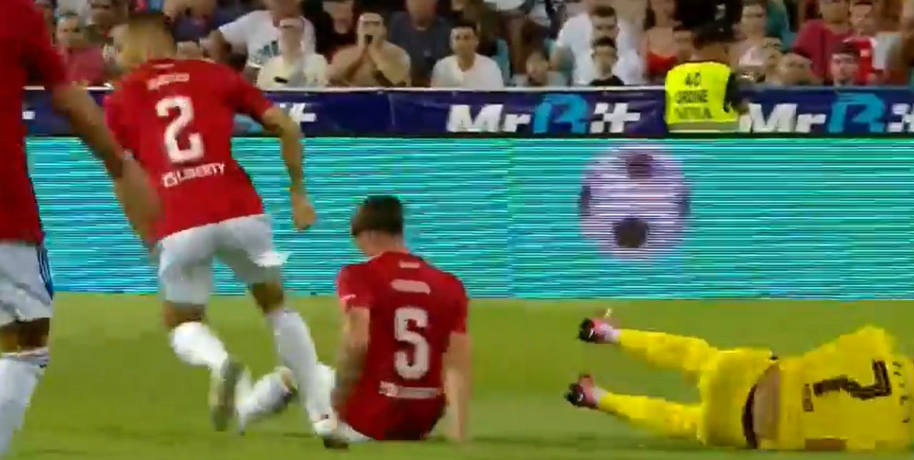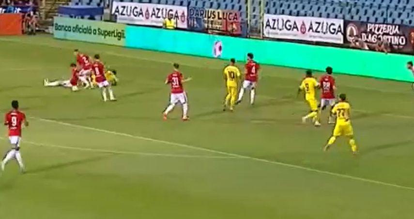 Faza i-a avut în prim plan pe Alexandru Musi și pe Vadik Murria, iar din reluările oferite pare că jucătorul Oțelului nu atinge mingea în momentul intervenției la jucătorul lui Dinamo.
