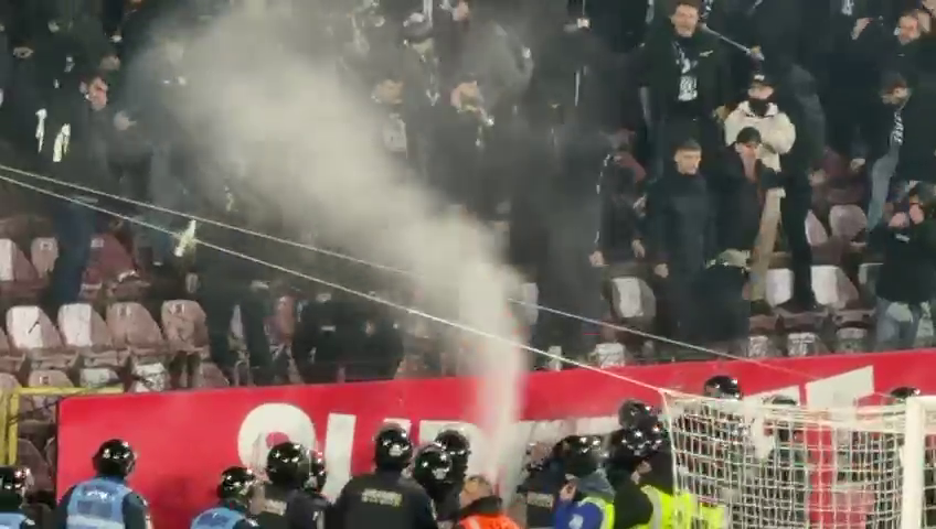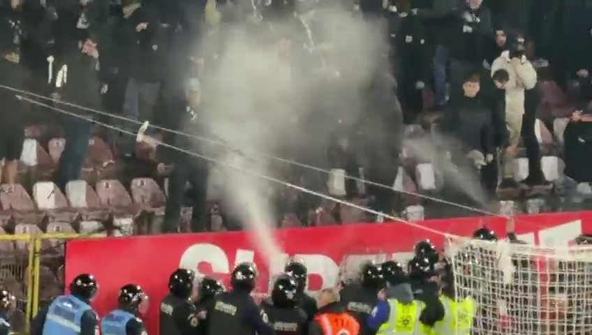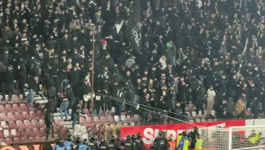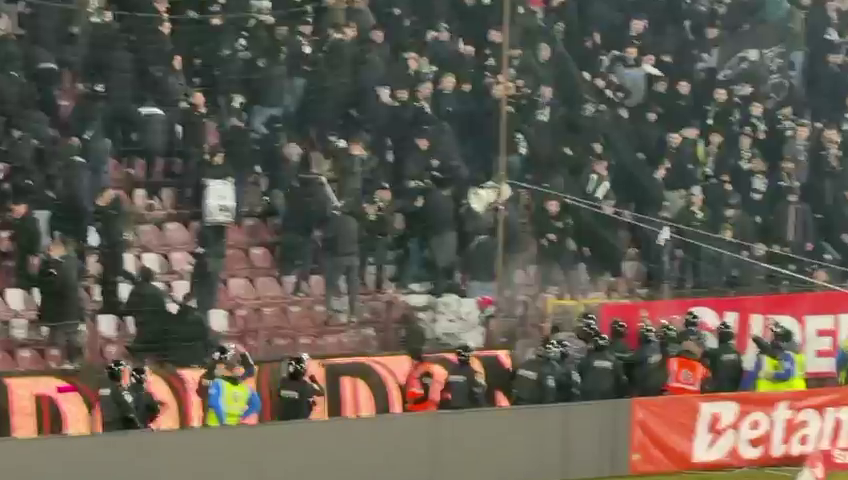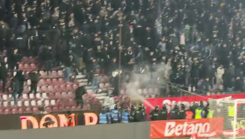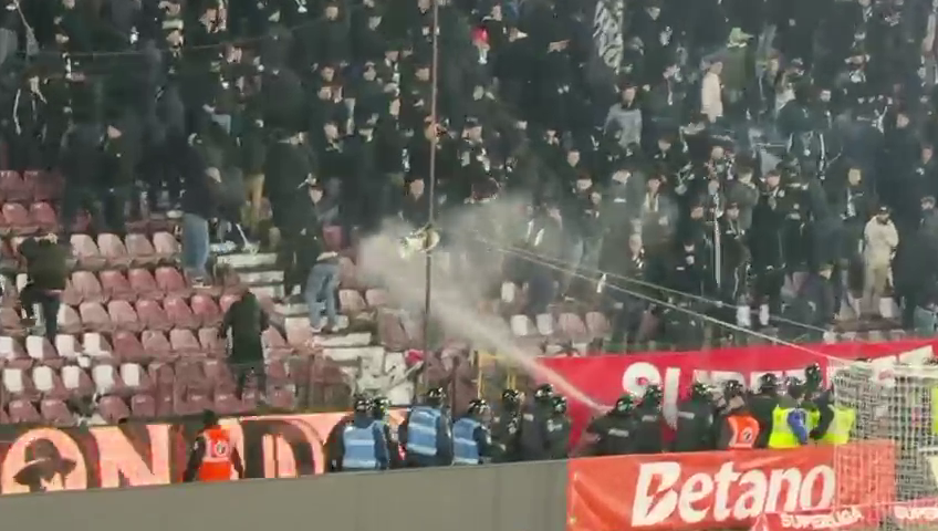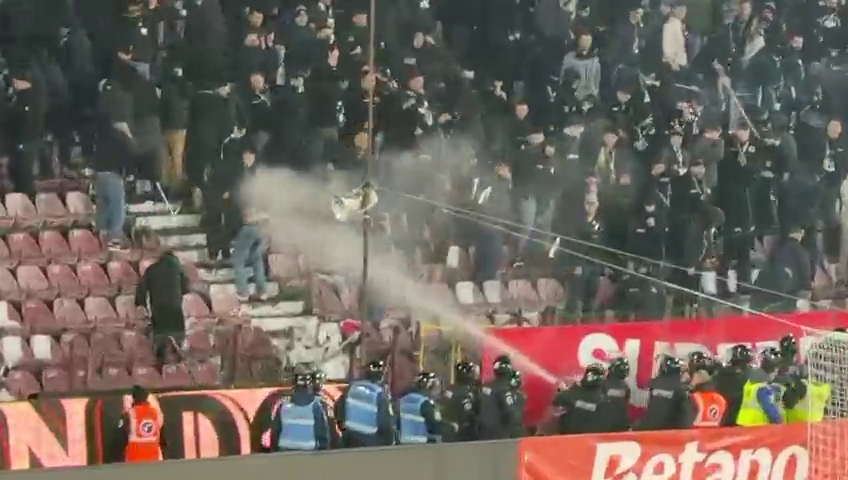 Fanii lui ”U” Cluj au răbufnit și ei după conflictul dintre Bergodi - Cordea, dar jandarmii au împânzit peluza și au dat cu gaze lacrimogene ca să-i potolească pe suporteri.