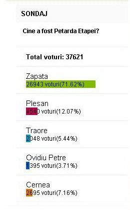Aproape 70.000 de oameni au ales: Zapata, petarda etapei! Alexe, meseriasul!