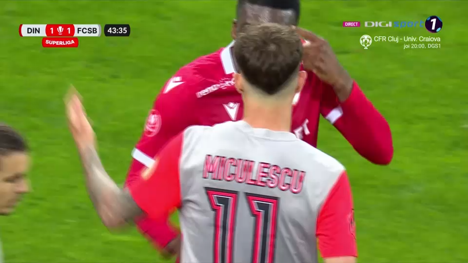 Florin Andrei l-a avertizat cu cartonaș galben pe Miculescu pentru gestul său. Fostul jucător de la UTA a fost certat și de fundașul lui Dinamo, Josue Homawoo, care i-a cerut lui Miculescu să plece din dreptul galeriei dinamoviste.