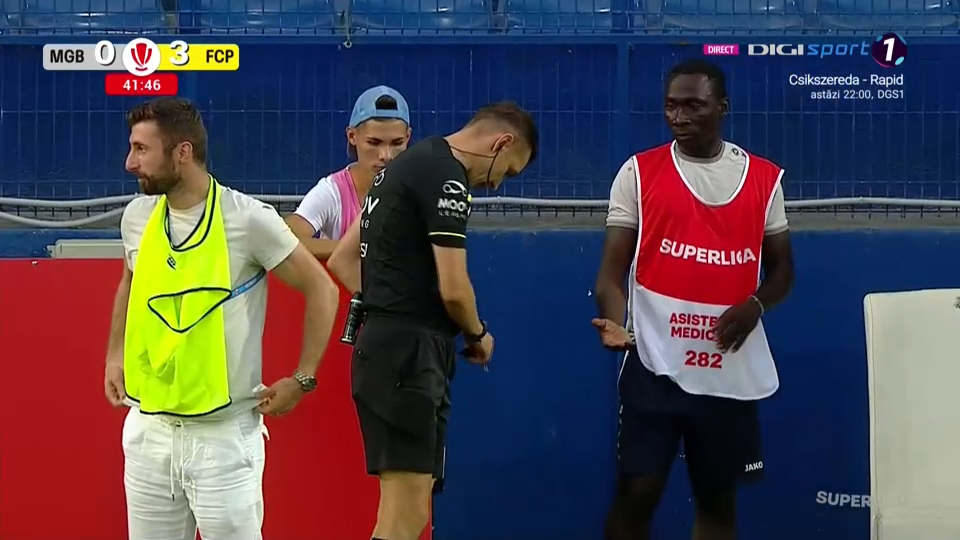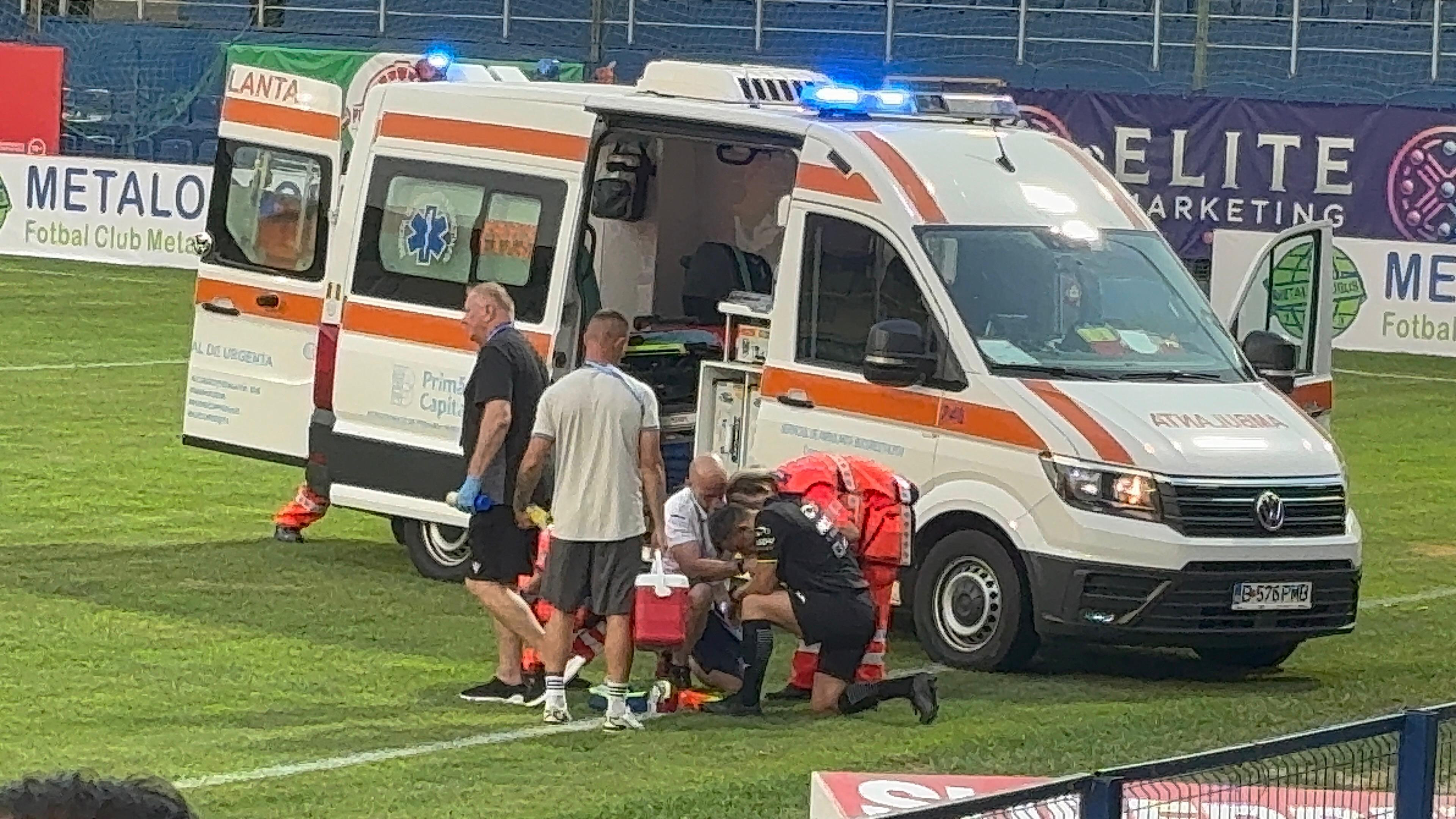 Bogdan Duță nu a putut continua partida și a fost urcat în ambulanță pentru a-i fi fixat cotul. În locul său, a intrat Claudiu Marcu.