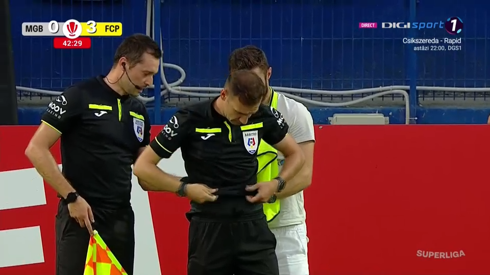 Arbitrul asistent al partidei, Bogdan Duță, a suferit o accidentare cumplită. În momentul în care a ridicat fanionul, cotul arbitrului a sărit, iar oficialul a îngenuncheat pe gazon.
