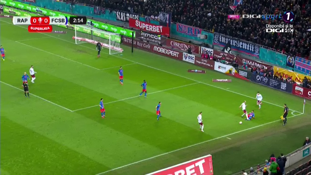 Rapid a reuşit să marcheze prin Alex Dobre (minutul 68), după o fază confuză în careul roş-albaştrilor, dar golul a fost anulat de arbitrajul video pentru ofsaid.
