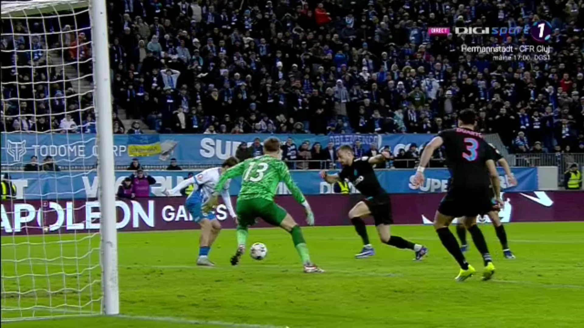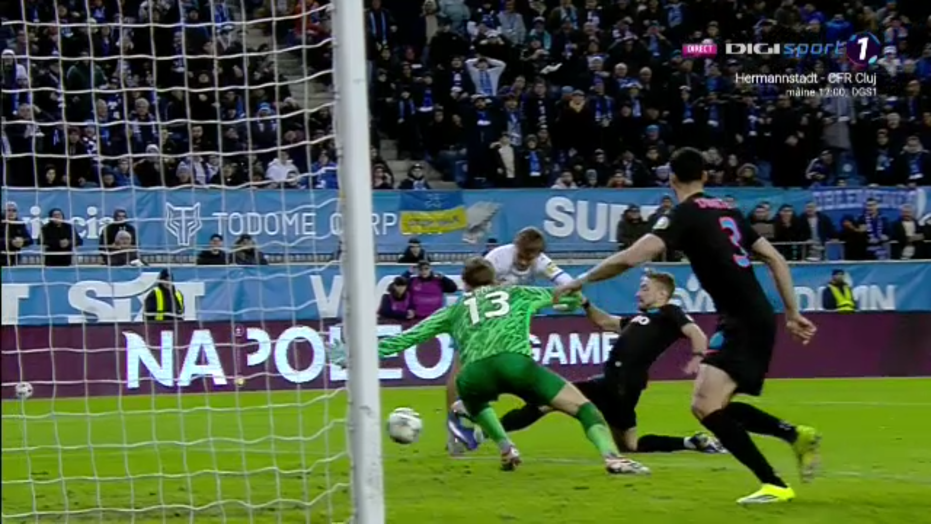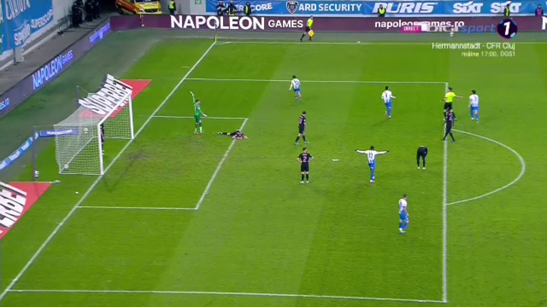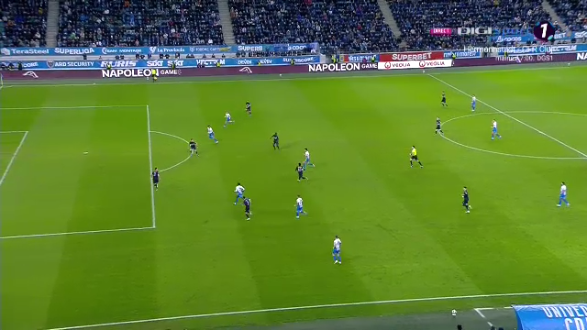 După cinci minute de consultări ale VAR, Barbu și-a revizuit hotărârea. Poziția lui David Matei de ofsaid a fost destul de evidentă pe reluări.