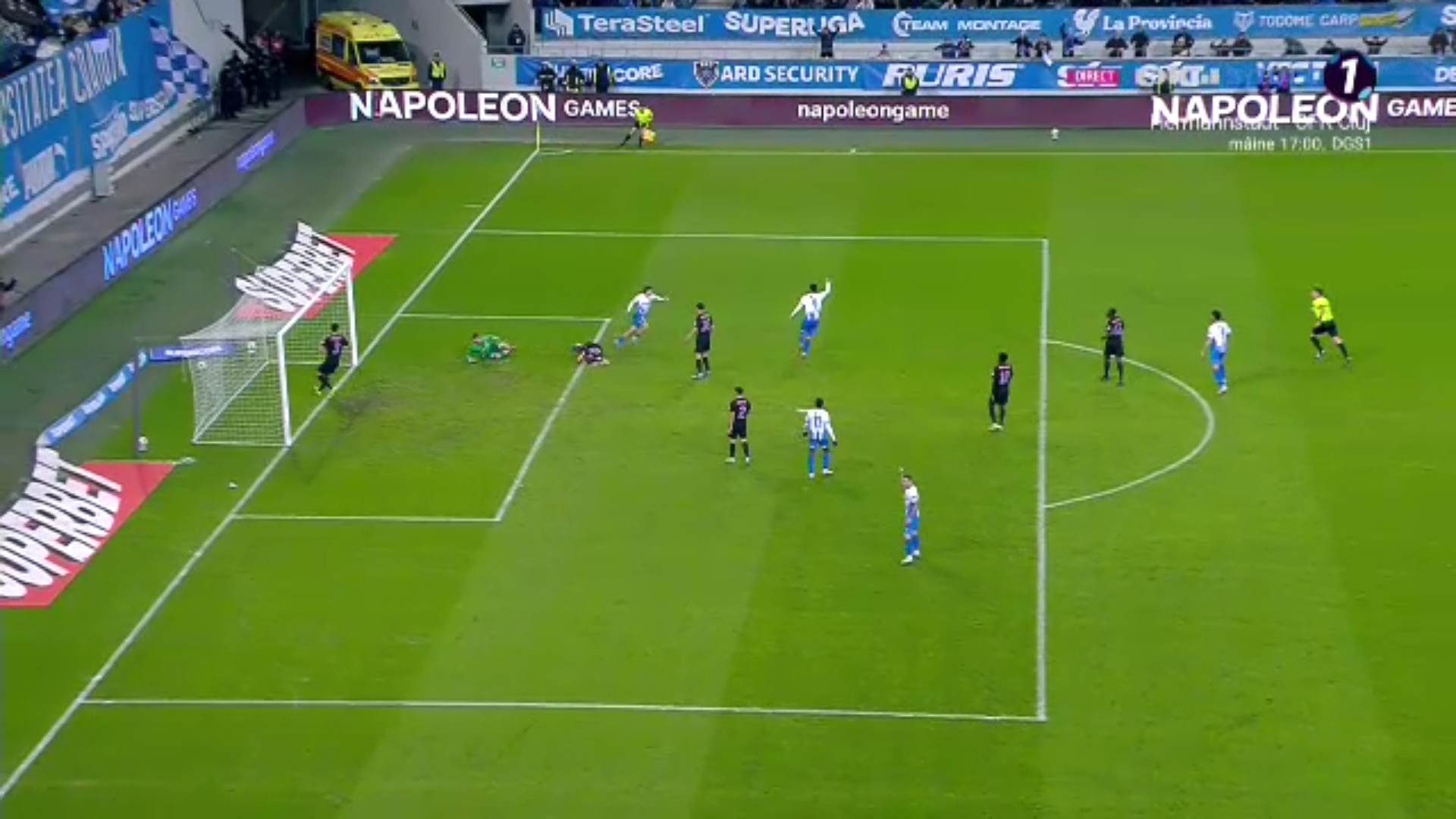 David Matei a introdus balonul în poartă în minutul 54, după un șut apărat de Matei Popa lui Al-Hamlawi. Arbitrul Marian Barbu nu a văzut inițial nimic regulamentar.
