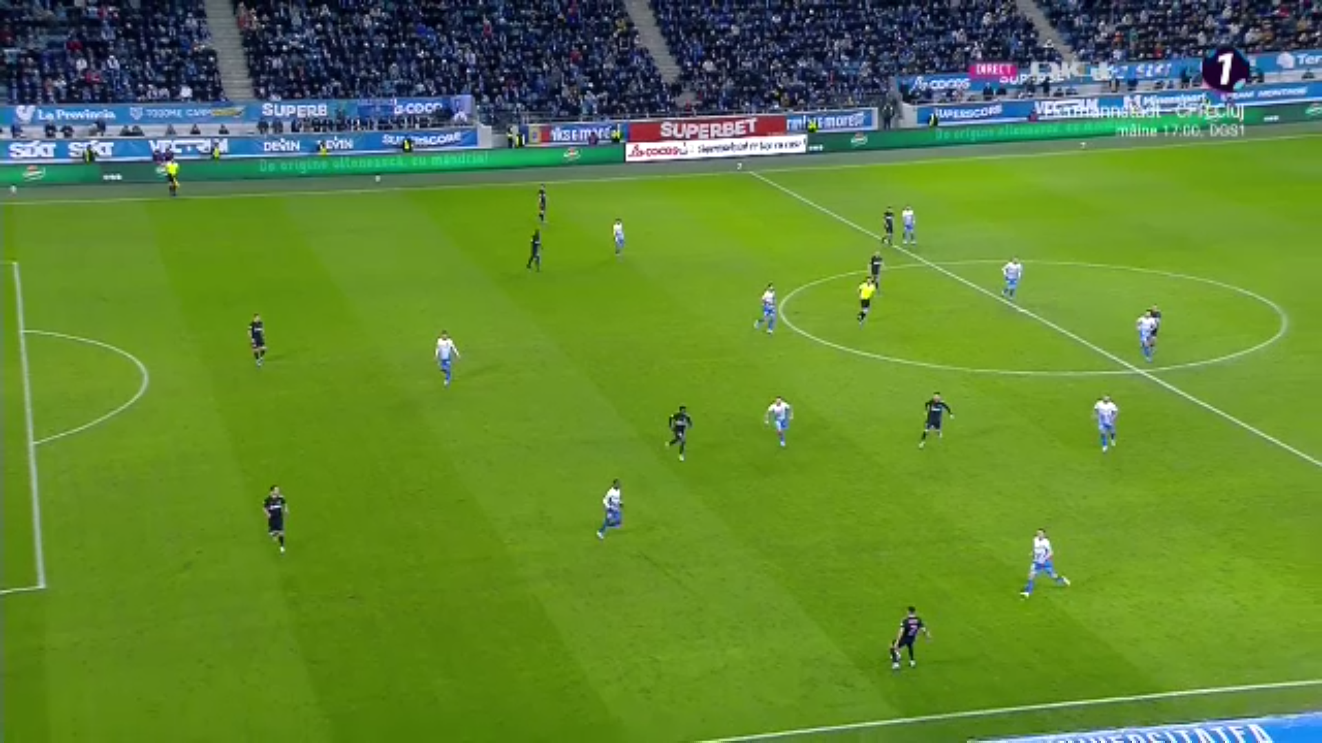 „Centralul” a avut însă de judecat dacă balonul venit la David Matei din Mihai Lixandru a fost similar unei pase greșite sau a ajuns din inerție, fără intenția fotbalistului celor de la FCSB, la jucătorul U21 al oltenilor.