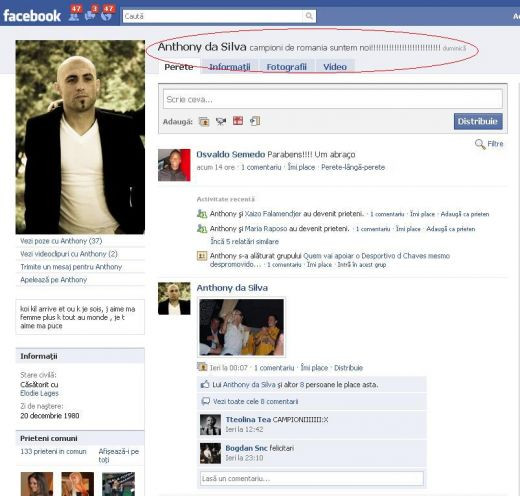 "campioni de romania suntem noi!!!!!!!!!!!!!!!!!!!!!!!!!!!", a fost mesajul postat de Tony pe Facebook.