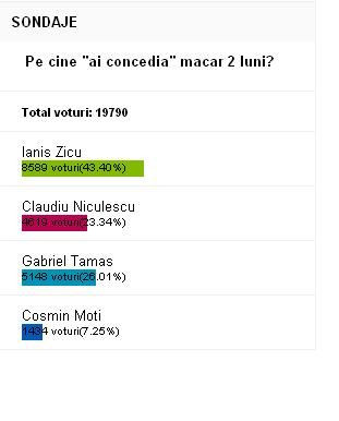 Cap de afis pe lista fanilor este Ianis Zicu, pe care 43% dintre fani l-ar concedia din Stefan cel Mare. Tamas vine si el tare din spate, cu 26% dintre voturi, iar Claudiu Niculescu inchide topul cu 23 de procente. Pe lista fanilor se mai afla si Moti, care a strans 7 procente.