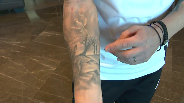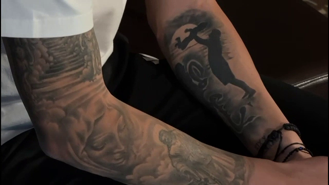 ”E lungă povestea tatuajelor. Aici e familia mea (n.r. arată spre antebrațul stâng), data de naștere a soției (n.r. pe încheietura mâinii stângi), Mântuitorul, frumos, cu niște porumbei (n.r. pe antebrațul drept), Măicuța Domnului și, aici (n.r. pe umărul drept), drumul către Rai, să sperăm că va fi către Rai”, a spus Dan Nistor.