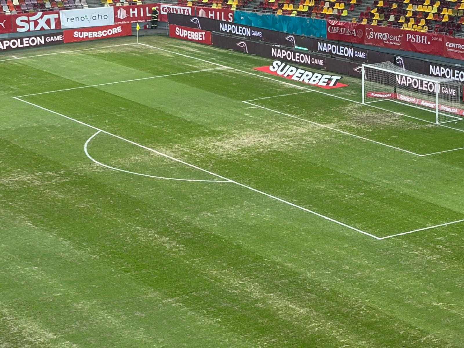 Minutul 5: Gazonul va fi cea mai mare problemă a ambelor echipe în această partidă. Arată deplorabil, din cauza vremii neprietenoase din ultima perioadă.