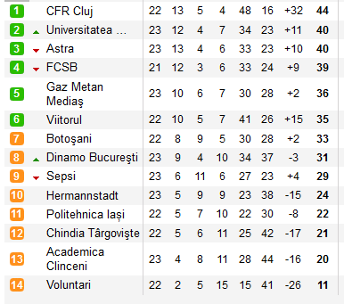 "Cainii" au ajuns la 31 de puncte, doar 4 sub Viitorul, ocupanta ultimei pozitii care trimite acum in playoff.