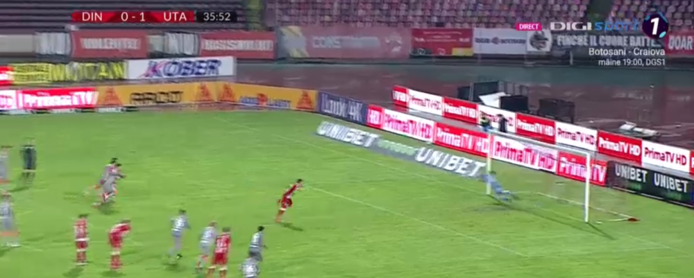 Min.34: GOOOOOOL UTA! Shlyakov centreaza din partea stanga, iar David Miculescu trimite o lovitura perfecta de cap si nu ii da nicio sansa lui Kongshavn!