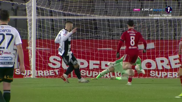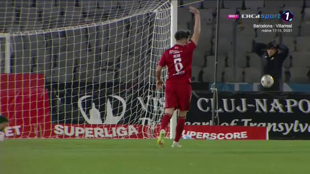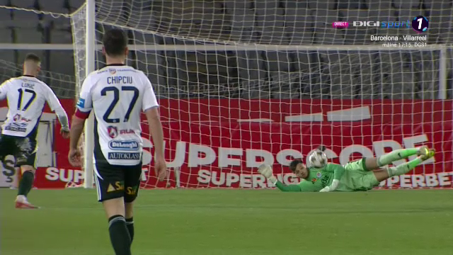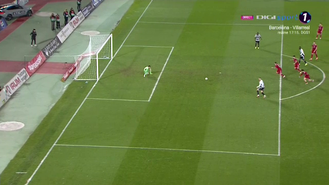 În minutul 25 al partidei de la Cluj, Macalou s-a desprins de aportorii Oțelului și a trimis un șut în forță din afara careului.