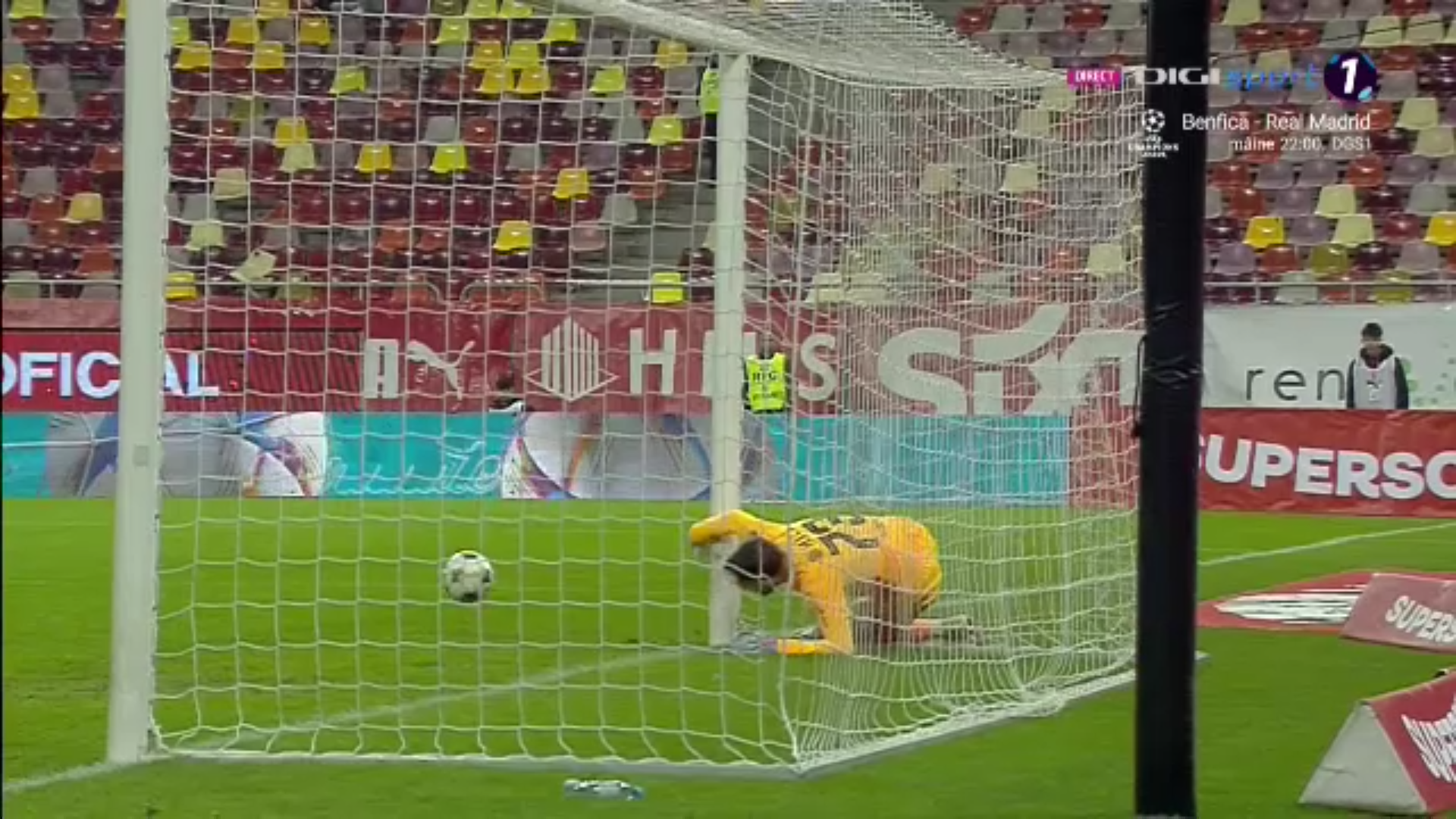 Alexandru Roșca, goalkeeper-ul lui Dinamo, a avut însă o reacție providențială. Acesta a scos practic mingea din poartă, salvând un gol ca și făcut într-un moment în care tabela arăta încă 0-0.