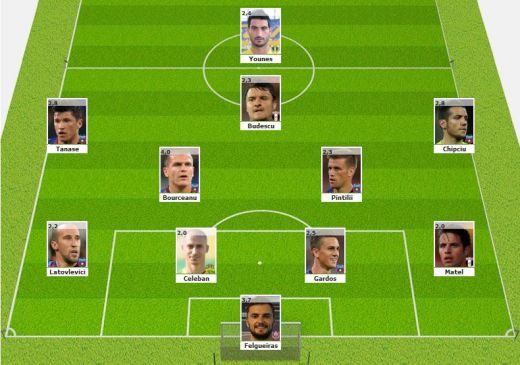 Felgueiras - Matel, Gardos, Celeban, Latovlevici - Pintilii, Bourceanu - Chipciu, Budescu, Tanase - Hamza.