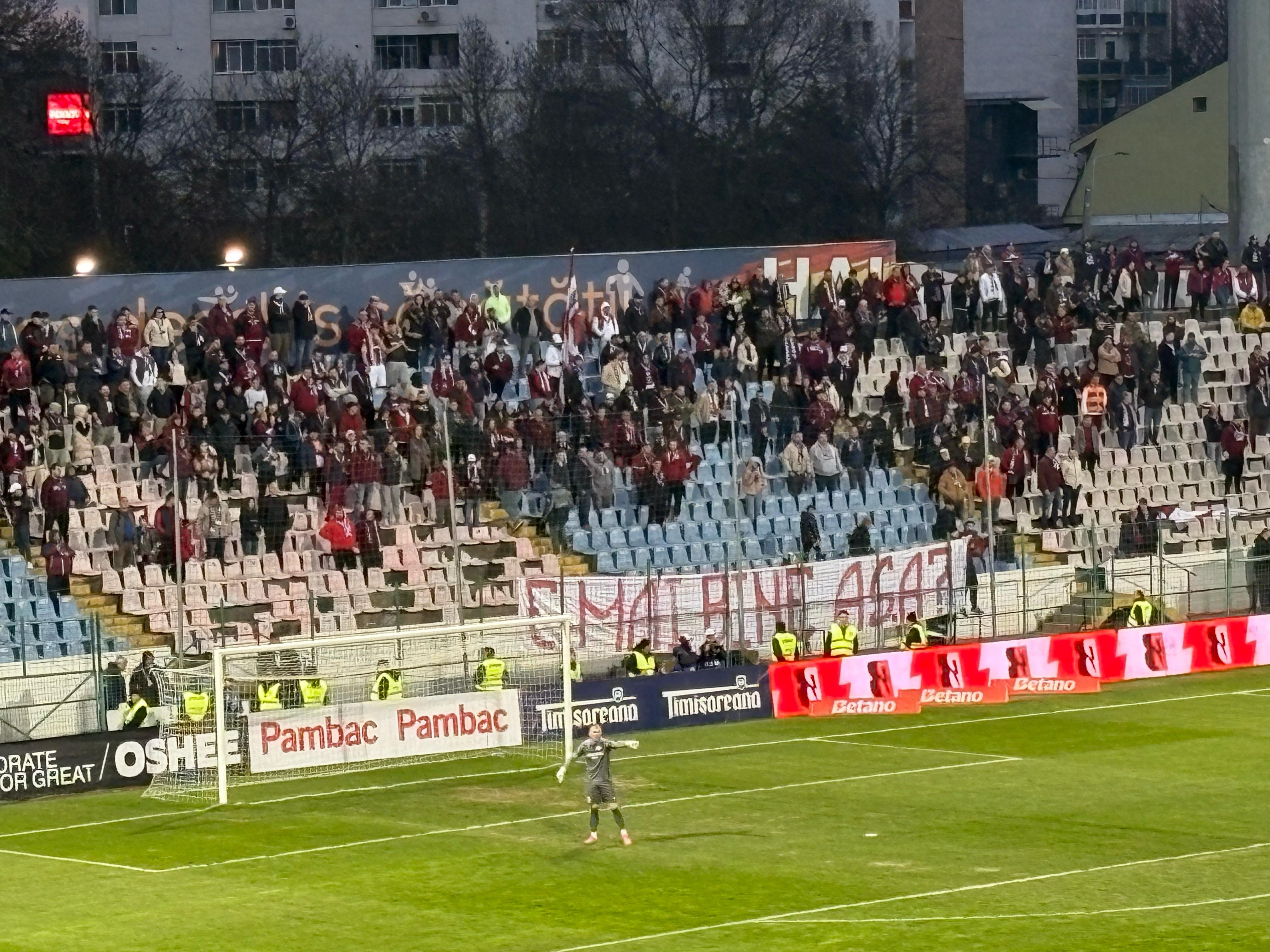 În locul tradiționalelor scandări și coregrafii spectaculoase, peluza giuleșteană a rămas tăcută preț de 20 de minute în prima repriză a partidei.