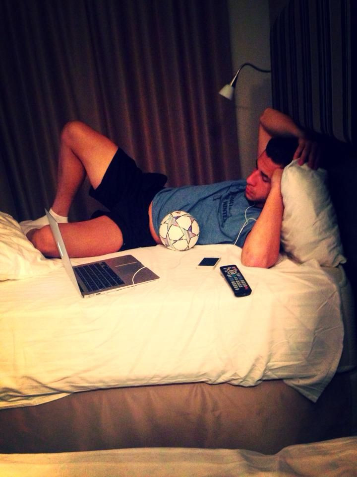 I-a facut o poza lui Georgievski dupa ce a adormit, imagine langa care a scris: "this guy( Daniel Georgievski) is crazy, he fall asleep with a laptop, phone and a BALL!!! :)))))" - (baiatul asta e nebun, a adormit cu laptopul, telefonul si mingea langa el!)