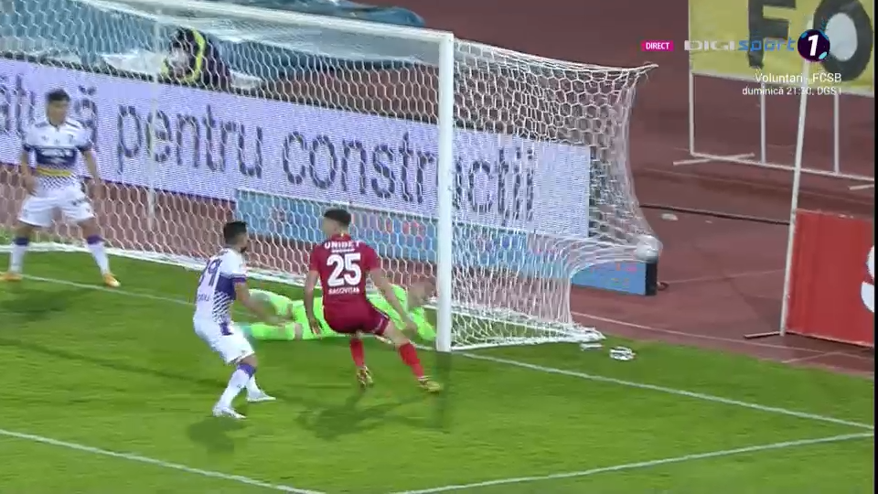Minutul 26 - Ocazie mare pentru FC Argeș! Fatai șutează puternic de la 25 m, iar mingea trece puțin pe lângă vinclul porții.