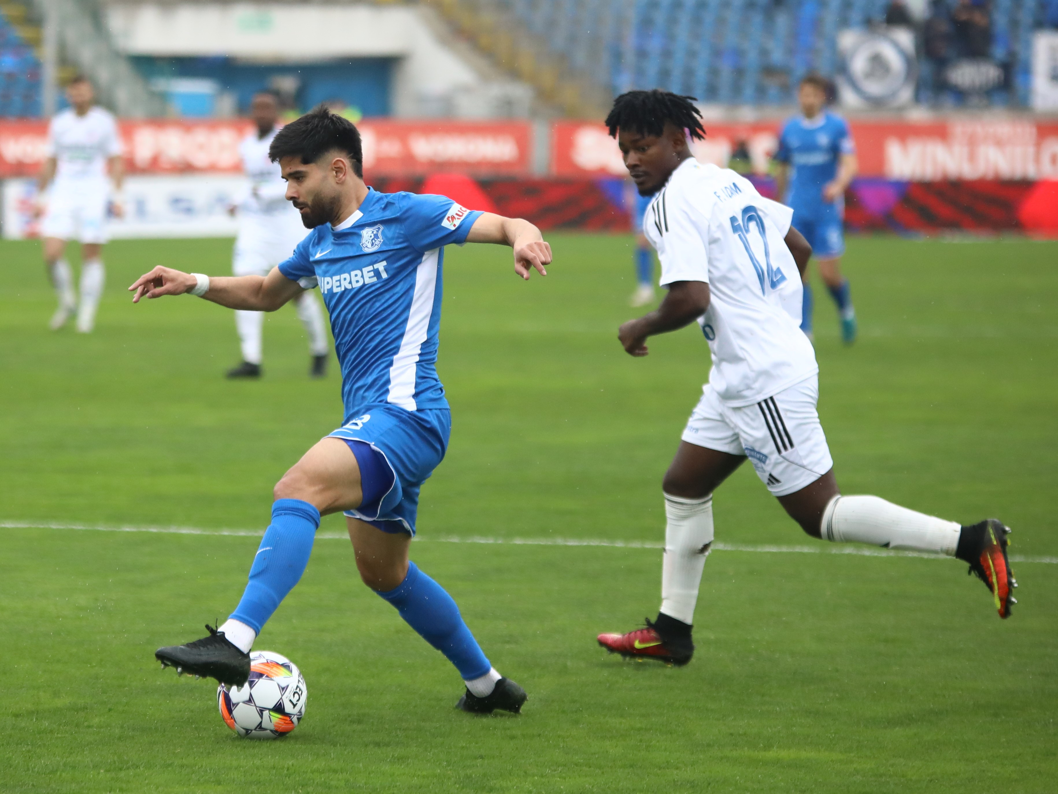 MIN. 38 Ocazie imensă pentru Farul, Luca Banu este singur în careu și dă din prima, dar mult deasupra porții.