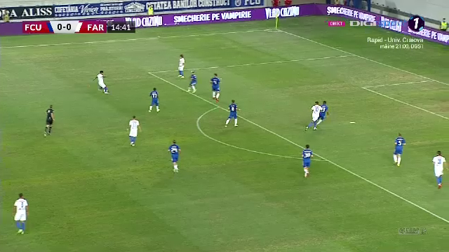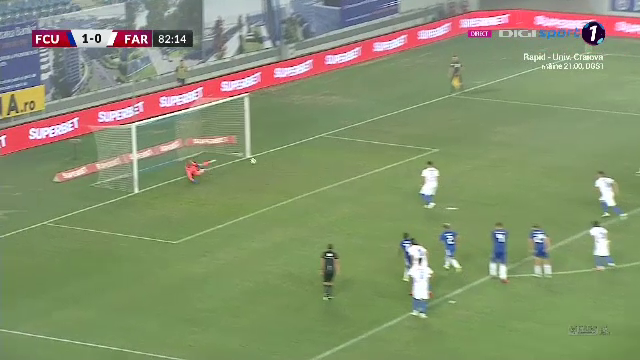 Min. 48: GOL FCU Craiova! Asamoah îi fură mingea lui Pitu, balonul ajunge la Bălan, care îl învinge pe Aioani.