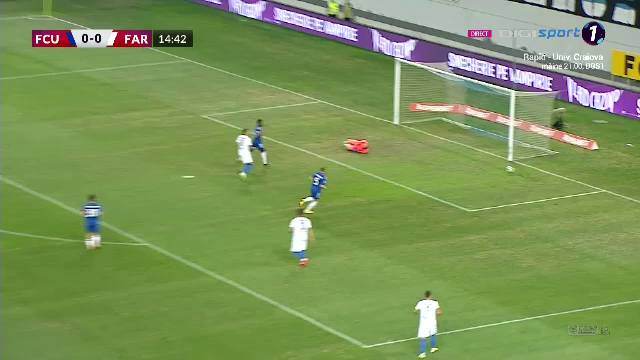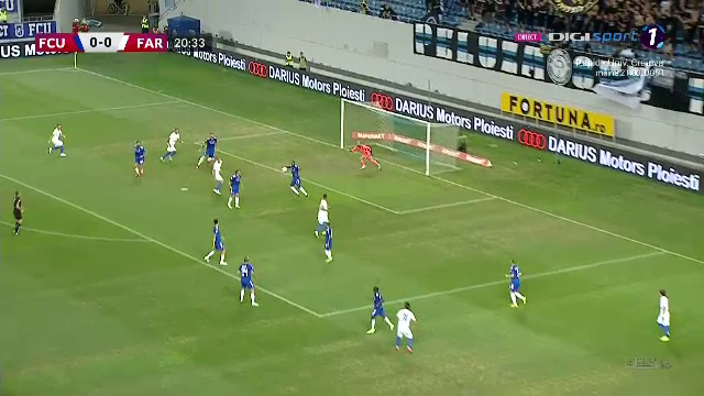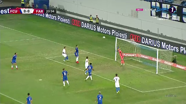 Min. 21: Ocazie Farul! Larie are o șansă mare de a marca, însă căpitanul constănțenilor nu profită de centrarea perfectă a lui Purece.