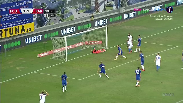 Min. 90+2: Ocazie Farul! Petre îi centrează lui Purece, dar dintr-o poziție ideală, jucătorul constănțean ratează șansa de a-i aduce victoria echipei sale.
