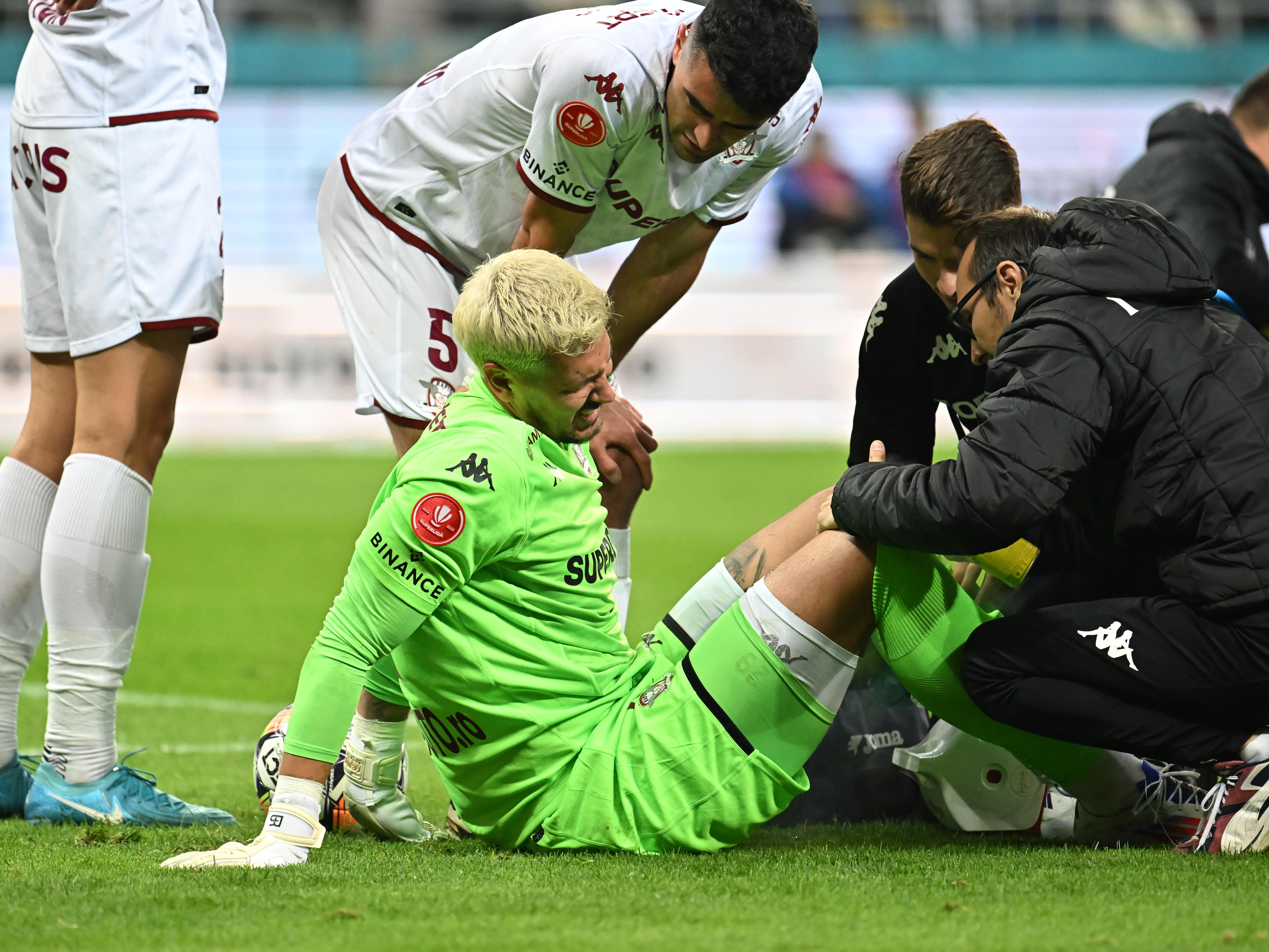 Min. 37: Kait se accidentează și nu mai poate continua meciul. Șumudică îl trimite pe teren pe Emmers.