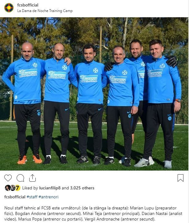 Mihai Teja a preluat comanda la FCSB dupa plecarea lui Nicolae Dica. Fostul antrenor de la Gaz Metan Medias si-a adus cu el oamenii de incredere cu care spera sa castige titlul. Pe pagina de Instagram a clubului a aparut astazi o fotografie din cantonamentul de la Marbella, in care este prezentat noul staff al lui Teja.