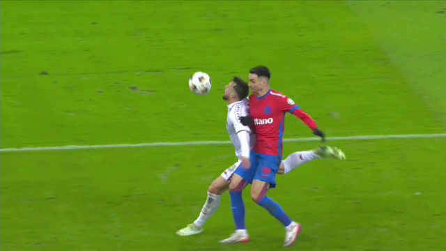Rapidiștii au reclamat un penalty neacordat de Istvan Kovacs în minutul 90+3, după un duel între Adrian Șut și Jakub Hromada, în urma căruia mijlocașul giuleștenilor s-a prăbușit în careul lui FCSB.