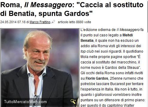 Italienii de la Il Messaggero anunta ca AS Roma il vrea pe Florin Gardos de la Steaua.