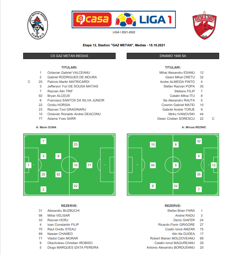 Mircea Rednic și-a început al cincilea mandat pe banca tehnică a lui Dinamo cu o remiză, 2-2 cu UTA Arad, pe teren propriu. Însă în etapa a 12-a a Ligii 1, „câinii” vor avea o deplasare grea la Mediaș, împotriva celor de la Gaz Metan. Cu Ilie Poenaru antrenor, transilvănenii au înregistat două victorii, 2-1 cu Rapid și 1-0 cu Chiajna, în Cupa României, un egal, 0-0 cu Sepsi, și o înfrângere, 1-2 cu CFR Cluj.